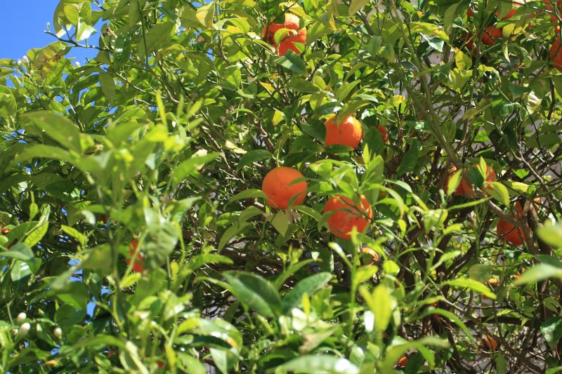 Das Tal von Soller steht voller Orangenbäume, über 100.000 sollen es (noch!) sein. Bis zu 100 kg. trägt ein einziger Baum, dennoch stellen die Orangen dort keinen Wirtschaftsfaktor mehr dar. Zwar sind mallorquinische Orangen süßer und saftiger als die bei uns im Supermarkt erhältlichen Apfelsinen aus Israel, der Türkei, vom spanischen Festland und sonstwoher.